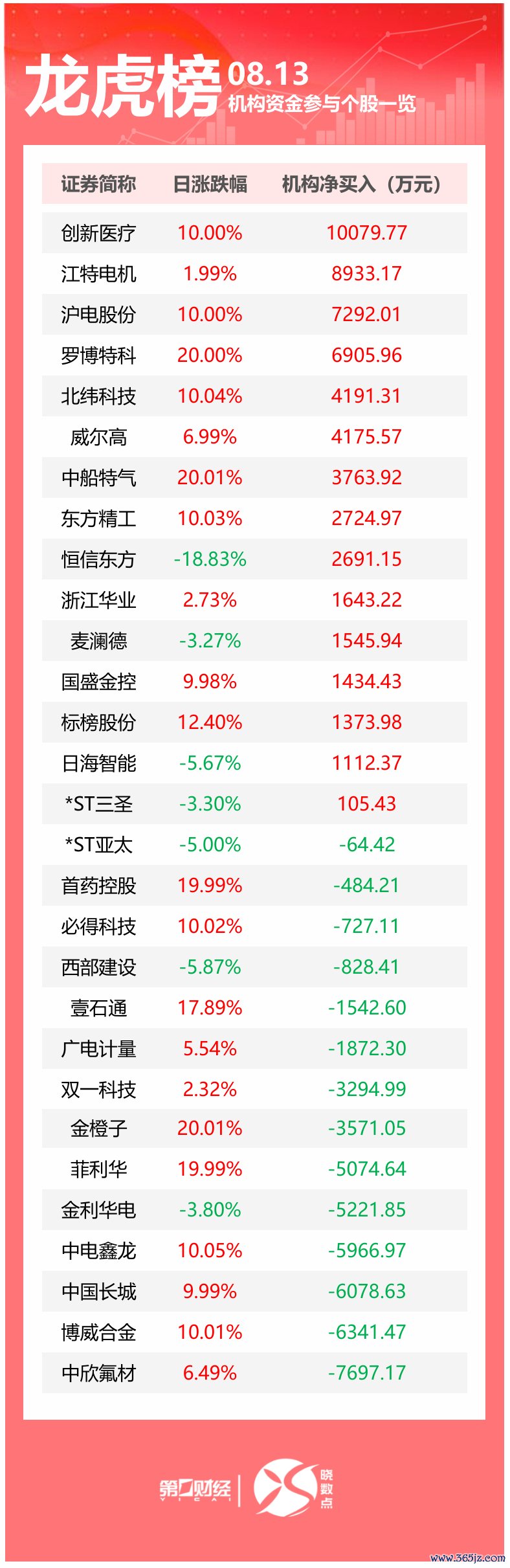 盘后数据显现,8月13日龙虎榜中,共29只个股出现了机构的身影,15只股票呈现机构净买入,14只股票呈现机构净卖出。