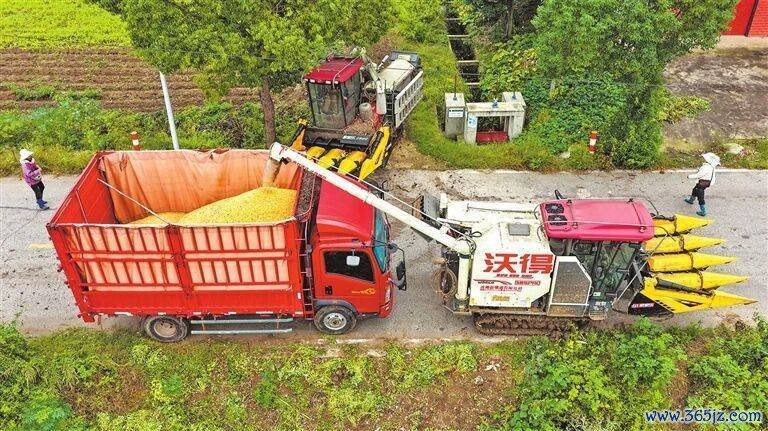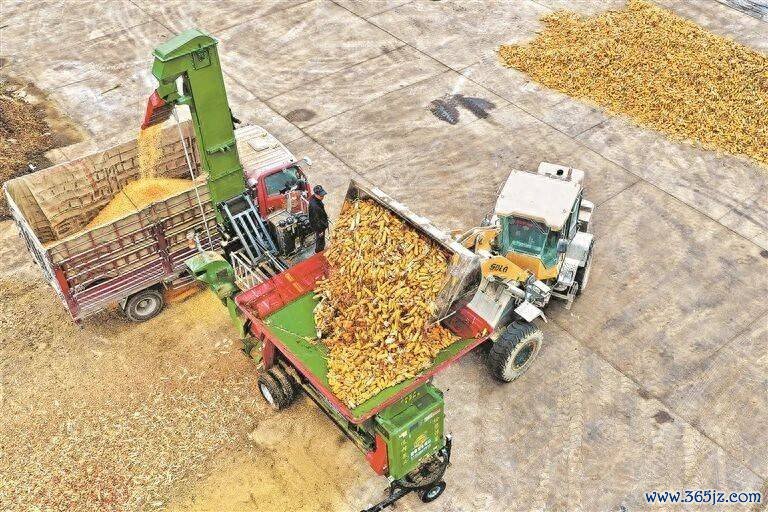 烘干是确保食粮物性的要害。在郑州荥阳市新田野合营社,收获的玉米正被源远流长地送来烘干。